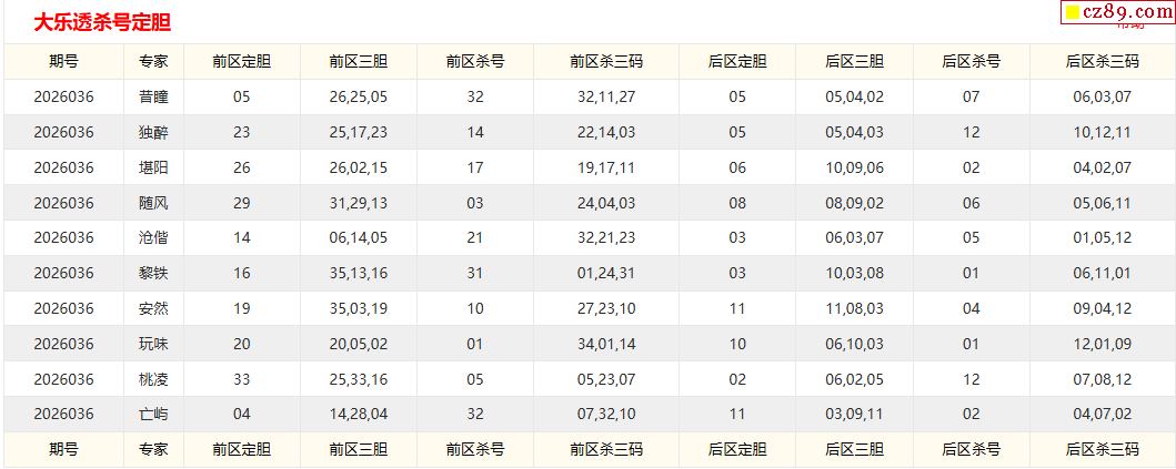 大乐透036期牛彩特邀专家前区后区杀号定胆图表