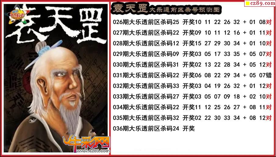 大乐透036期袁天罡前区杀号预测图