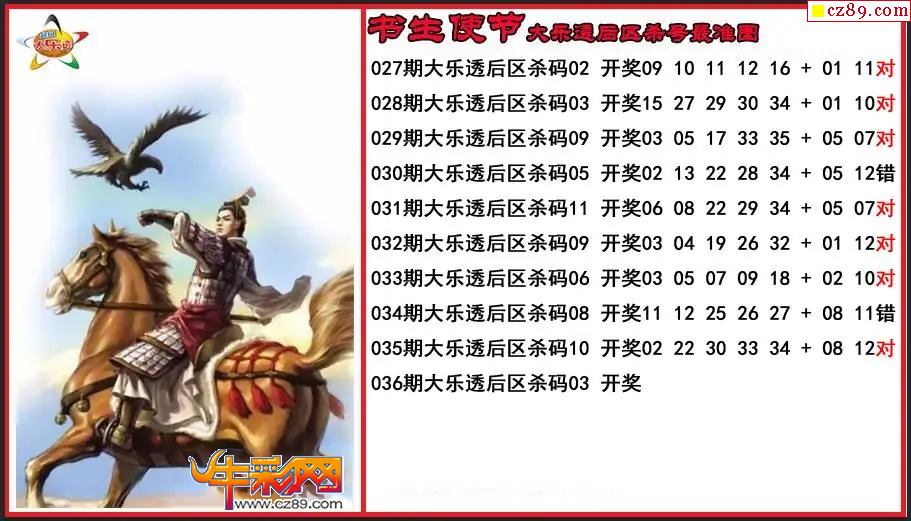 大乐透036期牛彩特邀专家前区后区杀号定胆图表