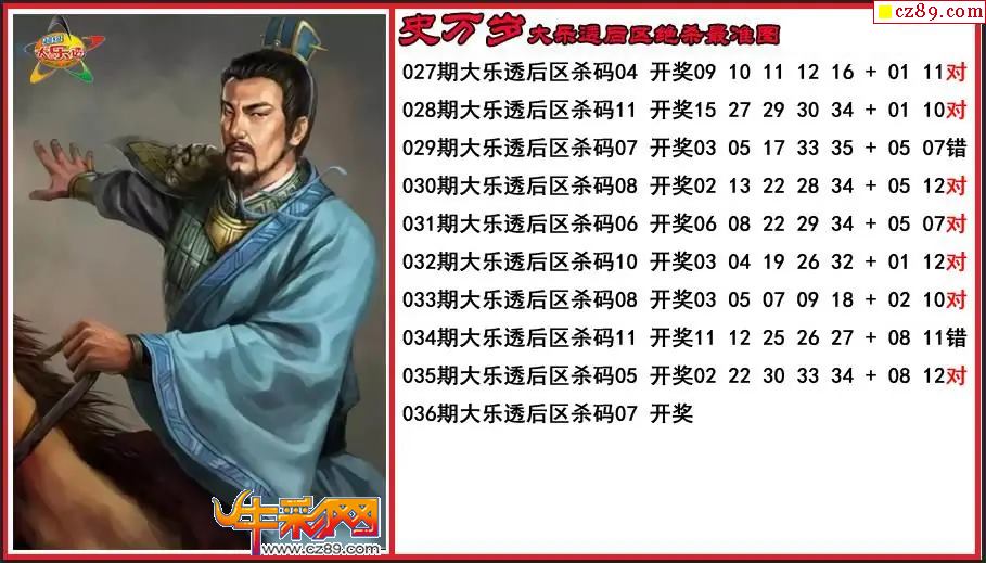大乐透2026036期关羽后区杀号图谜 10中7
