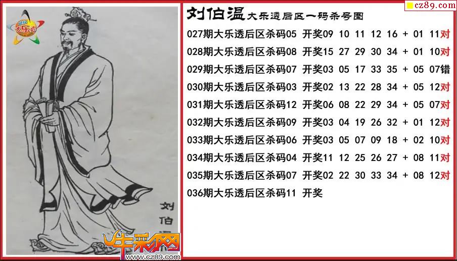 大乐透036期刘伯温后区一码杀号图