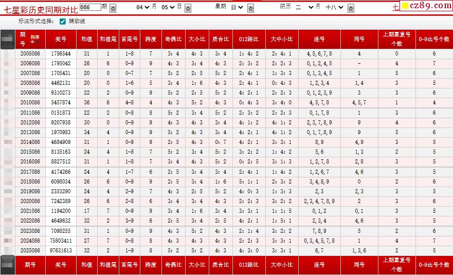038期七星彩历史同期对比图