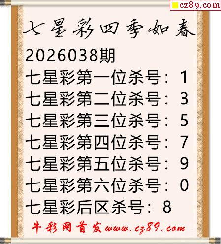 2026年038期七星彩 韩妹妹前两位心水2胆推荐