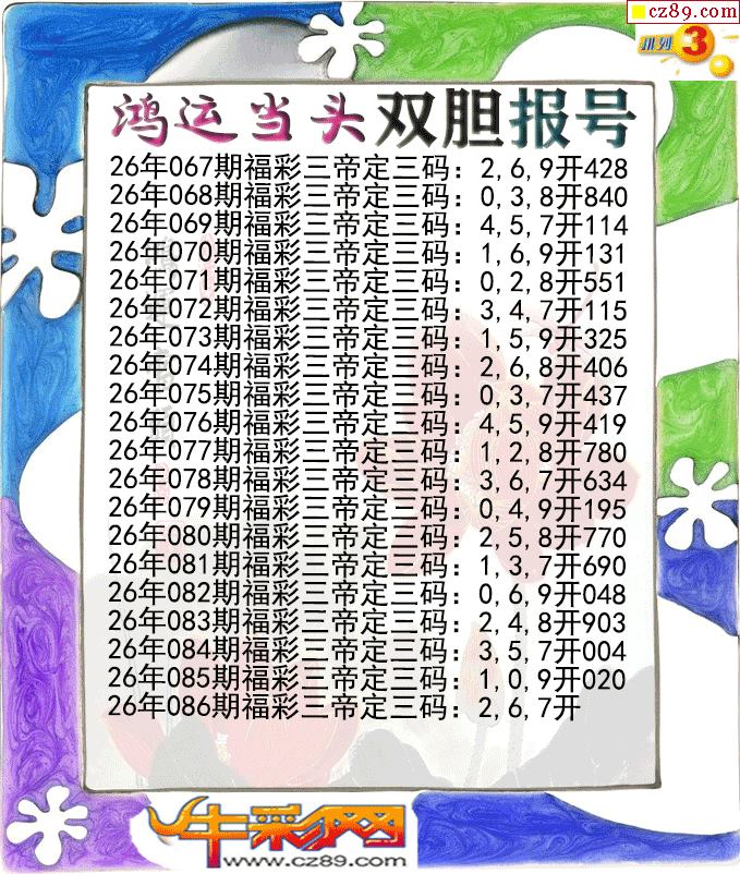 2026年086期牛彩网体彩P3画迷图谜汇总分享