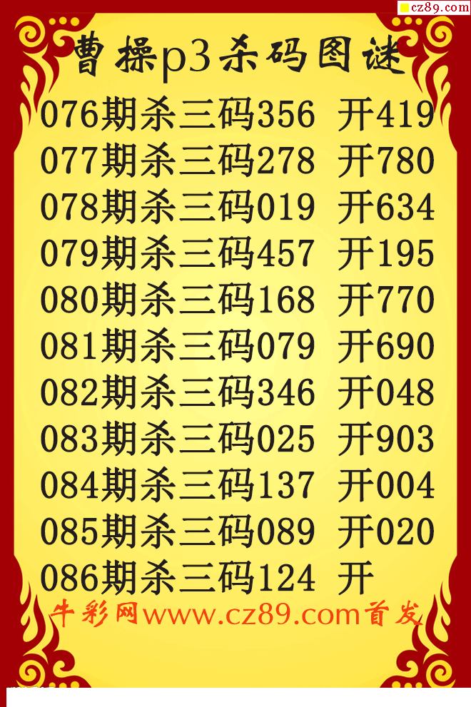 26年086期公孙宇P3杀码图