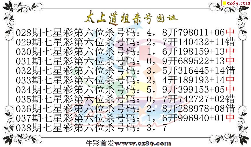 七星彩2026038期太上道祖杀号图谜 10中6