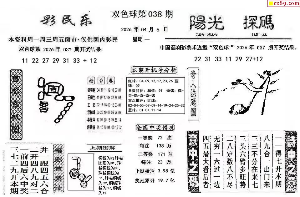 峨眉道姑杀蓝号038期双色球图谜 10中9