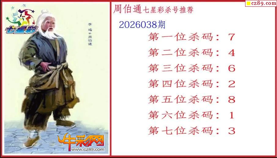 周伯通26038期七星彩杀号推荐图