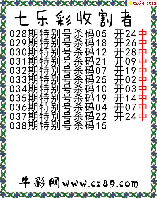 七乐彩2026038期收割者图谜 10中10