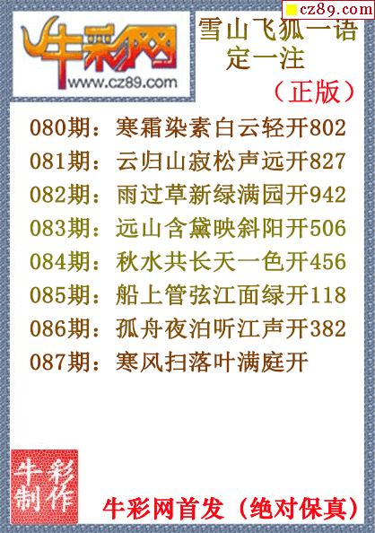 2026年087期七绝圣手3d和尾字谜【牛彩网...
