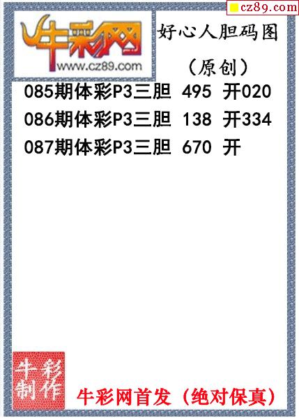 神彩飞扬三胆087期体彩P3图谜(原创)