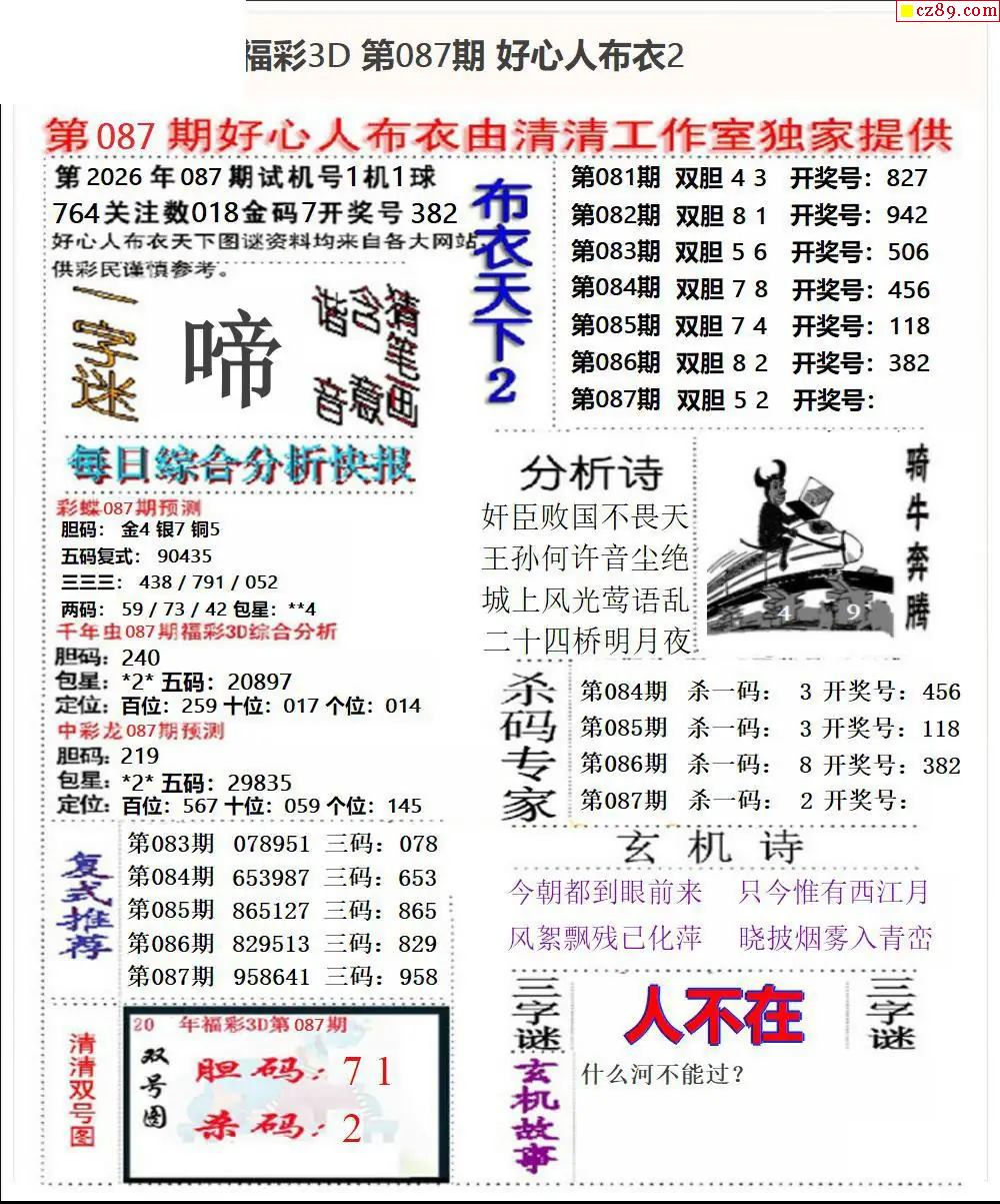 好心布衣2026087期3d图谜