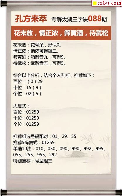 26年088期先开口巧解3d太湖真言 筛黄酒