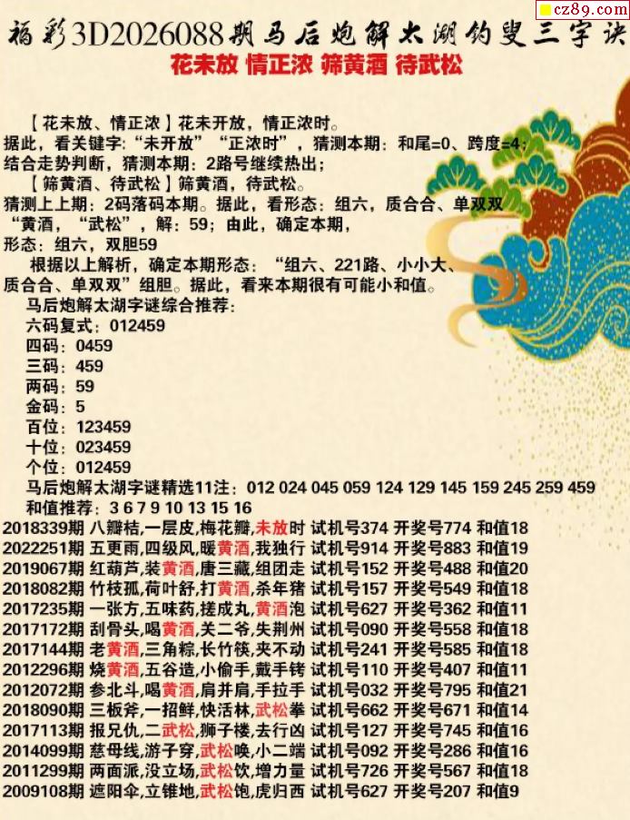 马后炮解26年088期3d太湖钓叟之 待武松