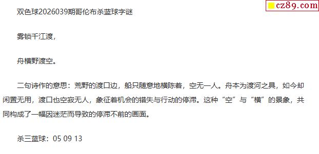 26年福彩双色球039期 哥伦布一句杀蓝球字谜