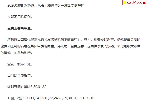 26年福彩双色球039期 白玫瑰定蓝球字谜