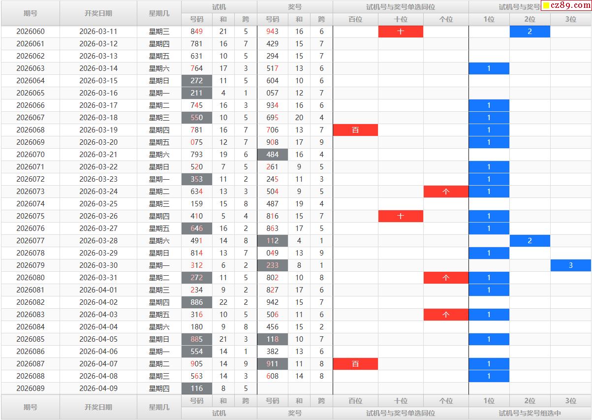 千禧2026年089期3d试机号261试机号对应...