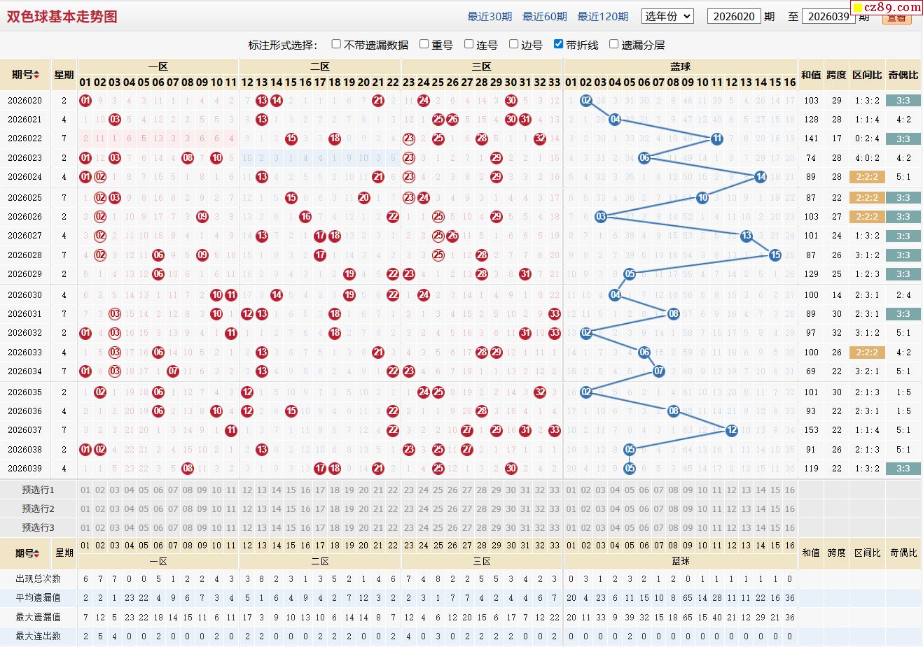 040期福彩双色球近期走势图分析
