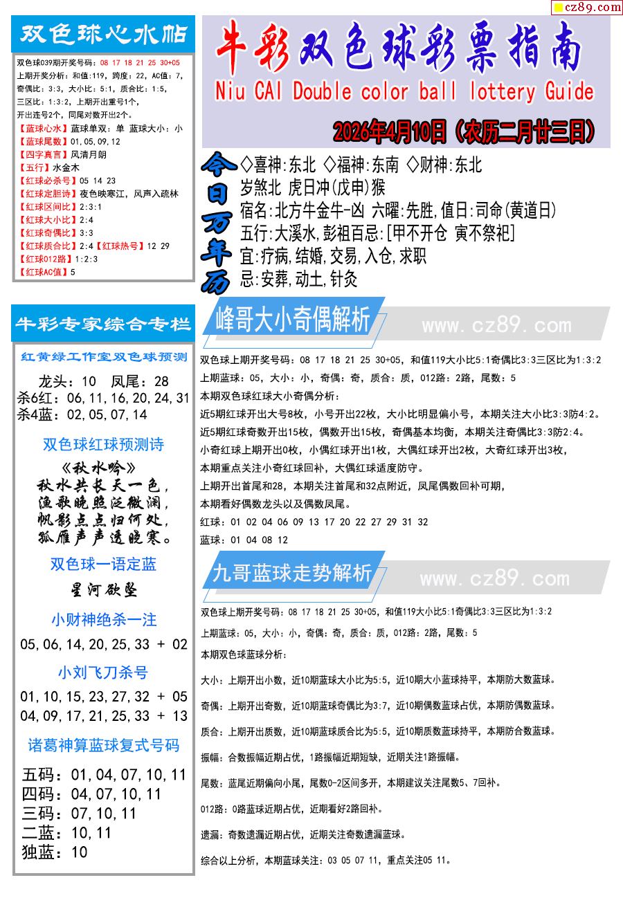 26年040期双色球彩票指南【牛彩版】