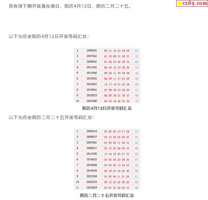历史上的今天双色球4月12日开奖号码汇总