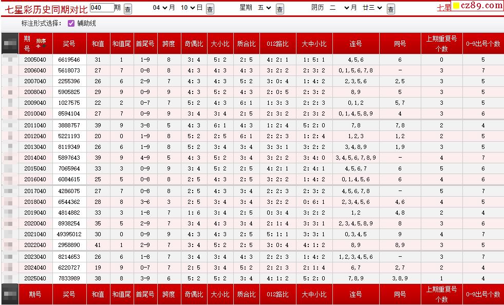 040期七星彩历史同期对比图