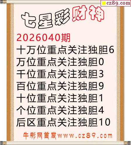 26年体彩七星彩040期 名扬天下本期推荐一注