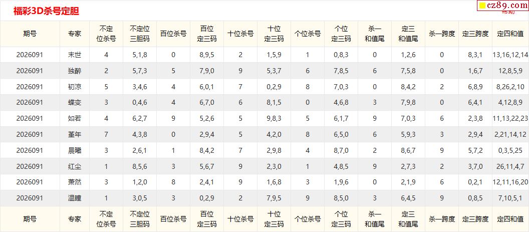 26年091期彩宝贝专家福彩3D杀号定码图表