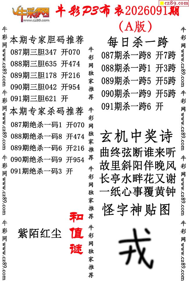 牛彩P3布衣26年091期AB版图谜(精华版)