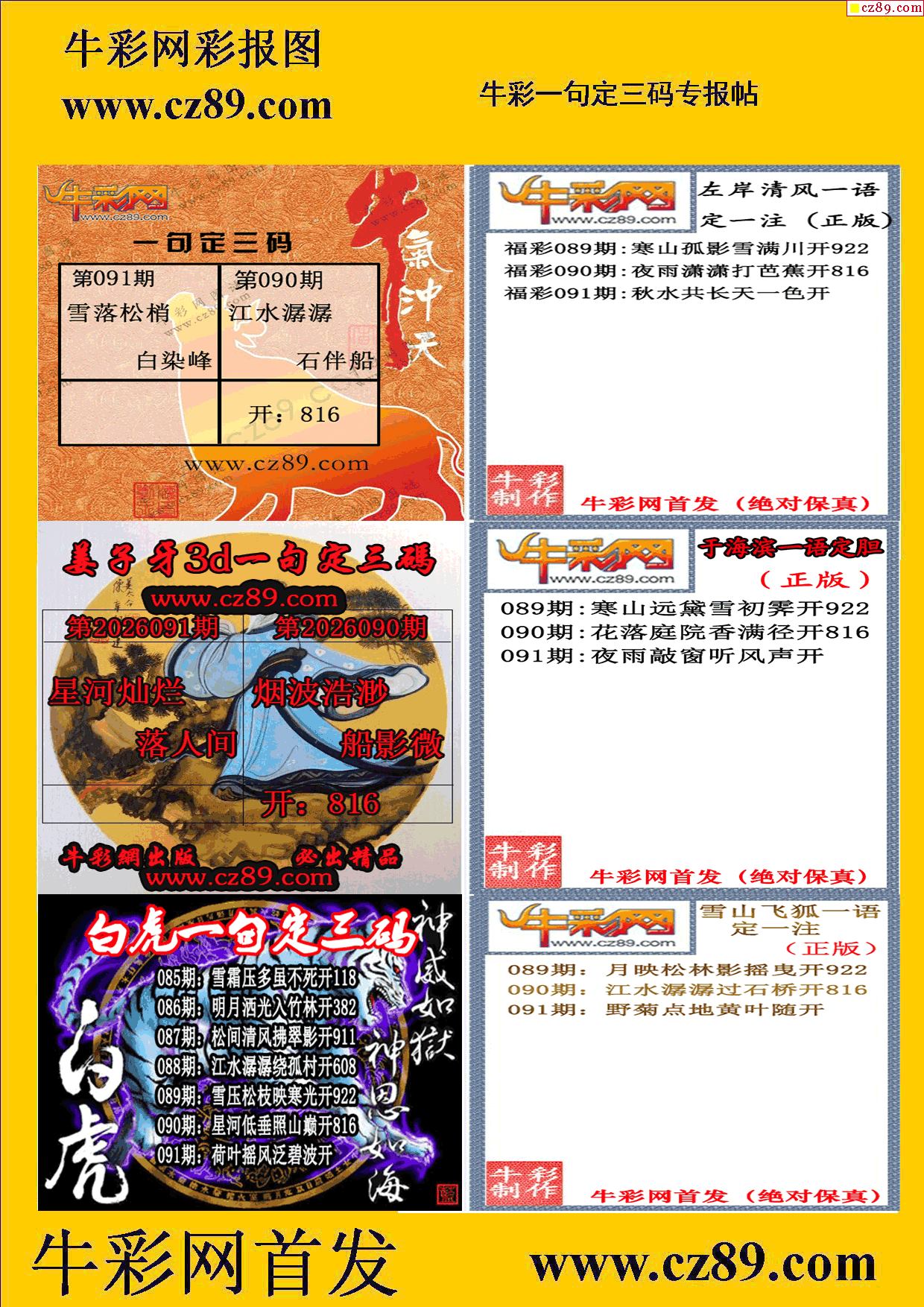 2026091期牛彩一句定三码