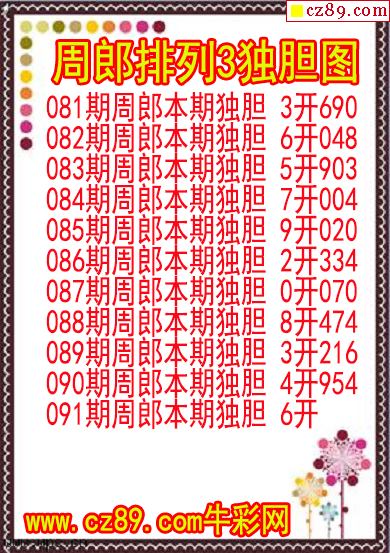 26年091期周郎排列3独胆图