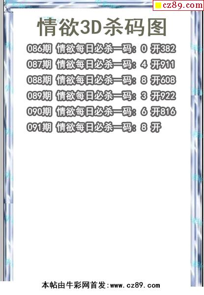 牛彩狙击手杀码2026091期3d图谜(原创)