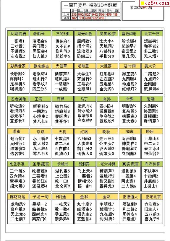 牛彩版3D字谜彩报图26年091期打印版