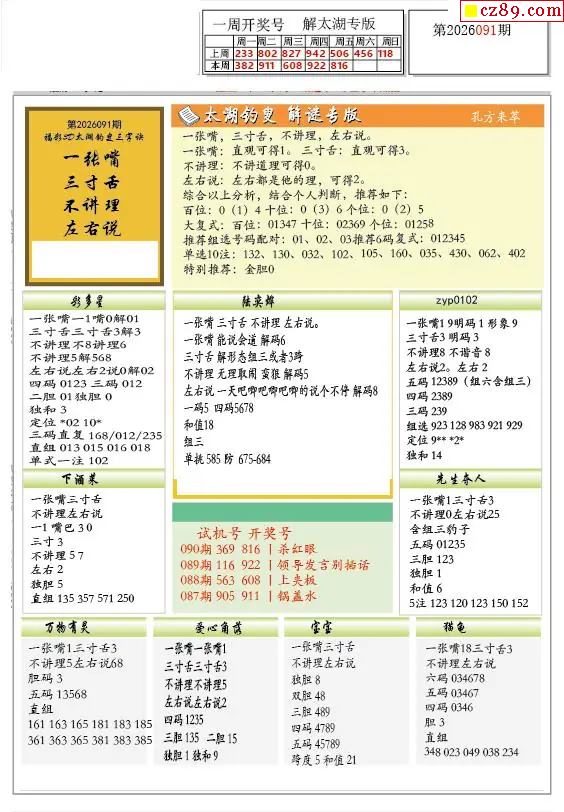 091期 彩吧彩报预测版