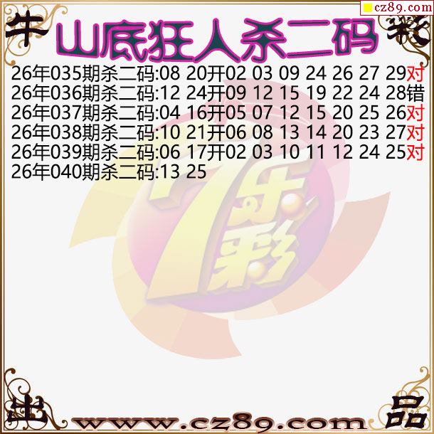七乐彩2026040期流光岁月杀码图谜 10中7
