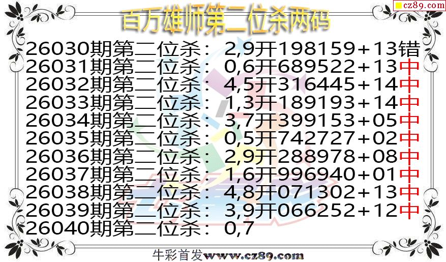 七星彩2026040期百万雄师第二位杀两码图谜 10中9