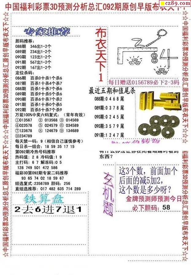 早版布衣2026092期3d图谜