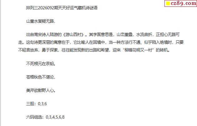 2026年藏机图092期 正版体彩P3藏机图诗汇总