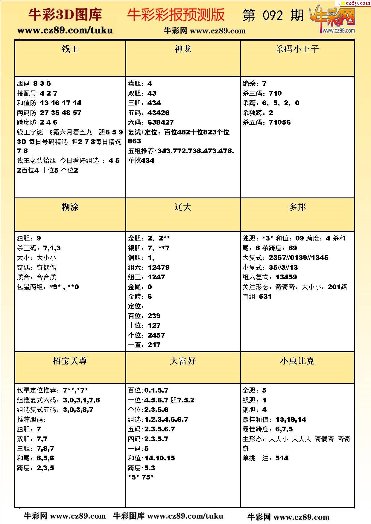 牛彩版3D预测彩报图26年092期打印版