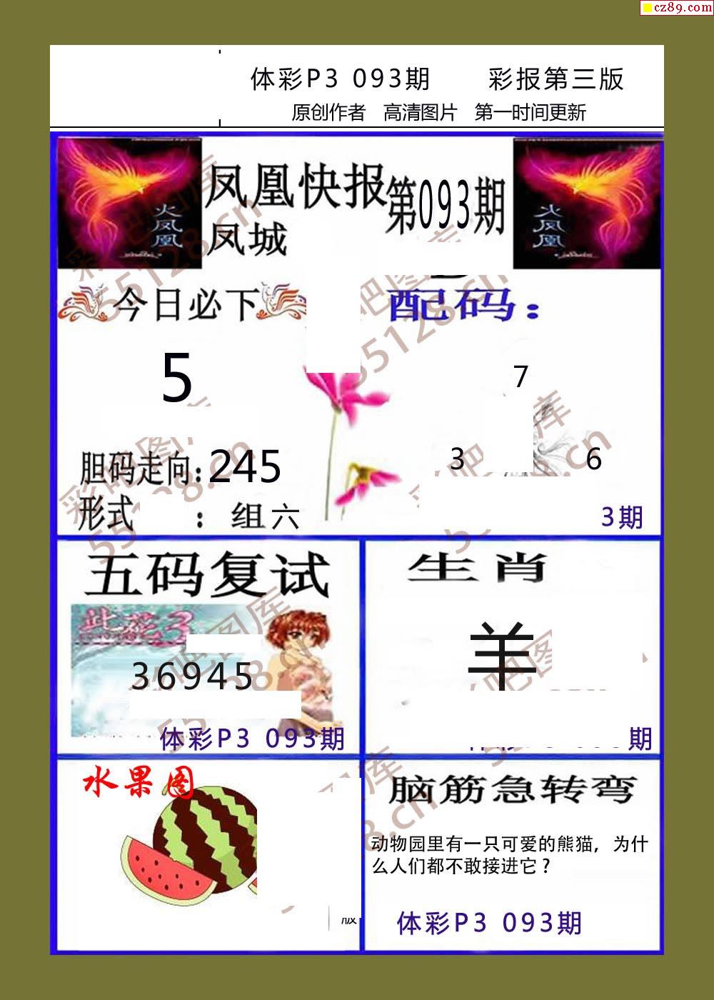 小小虎彩报093期体彩p3图谜