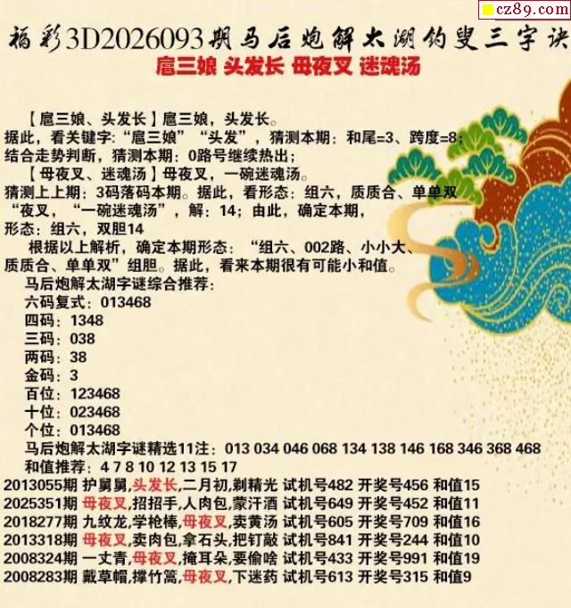 26年093期先开口巧解3d太湖真言 迷魂汤