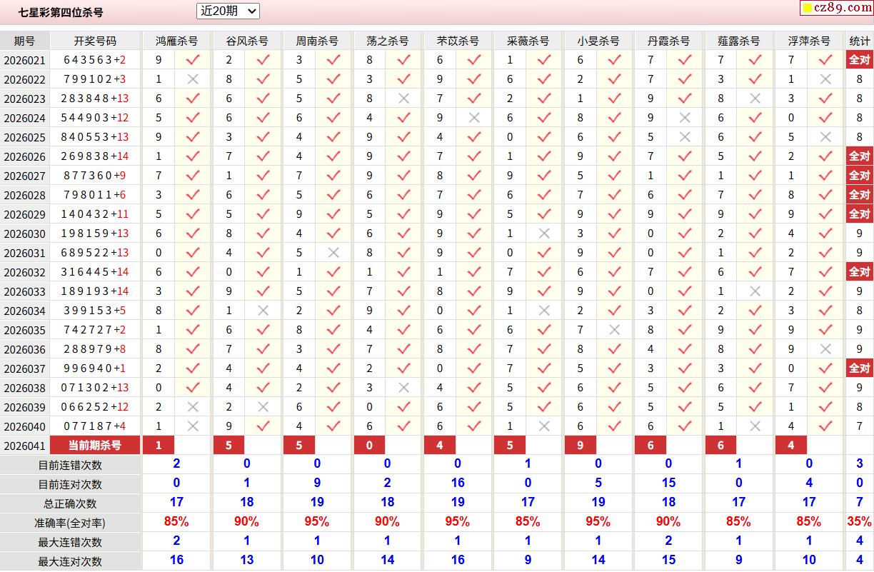 2026年041期七星彩 众彩推荐四位定胆