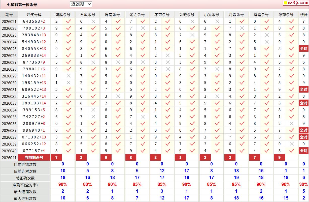 2026年041期七星彩 多斤王推荐二位杀码
