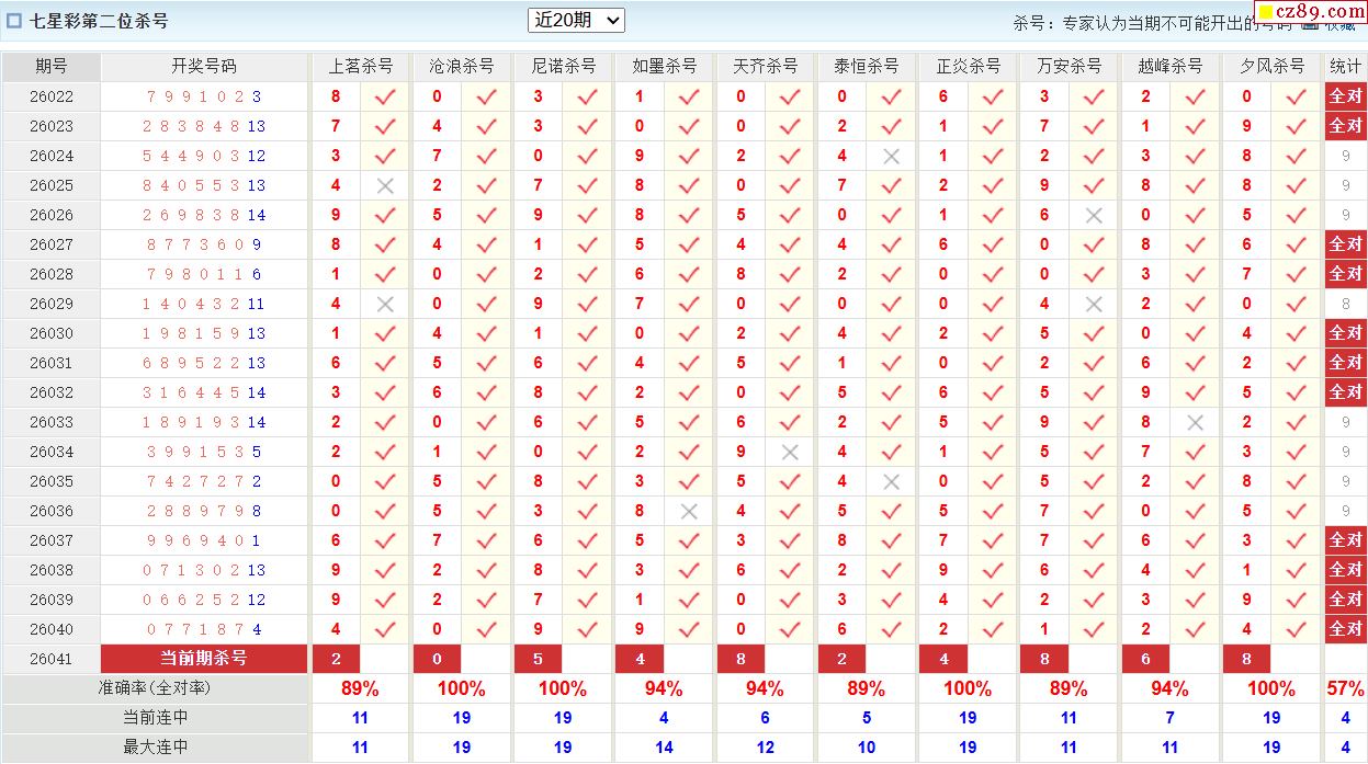 2026年041期七星彩 华彩网推荐二位定胆