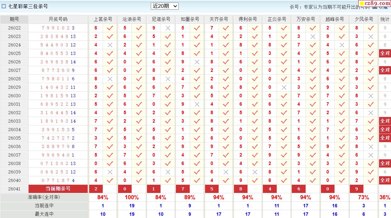 2026年041期七星彩 金手推荐三位杀码
