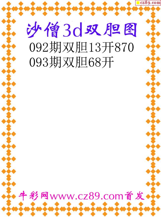 沙僧双胆26093期3d原创图谜