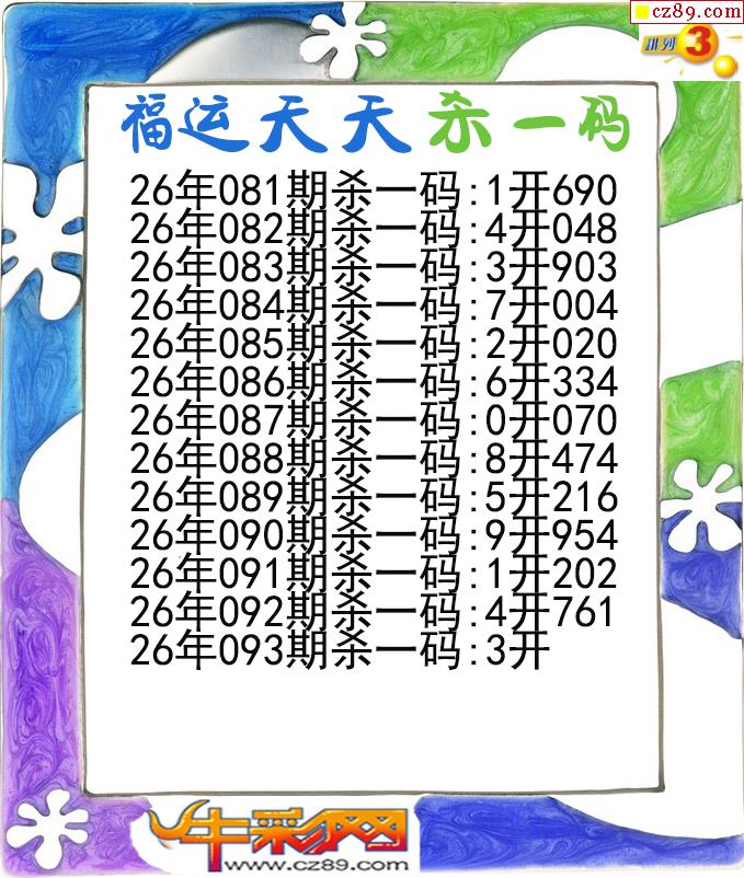 福运天天杀一码093期体彩P3图谜