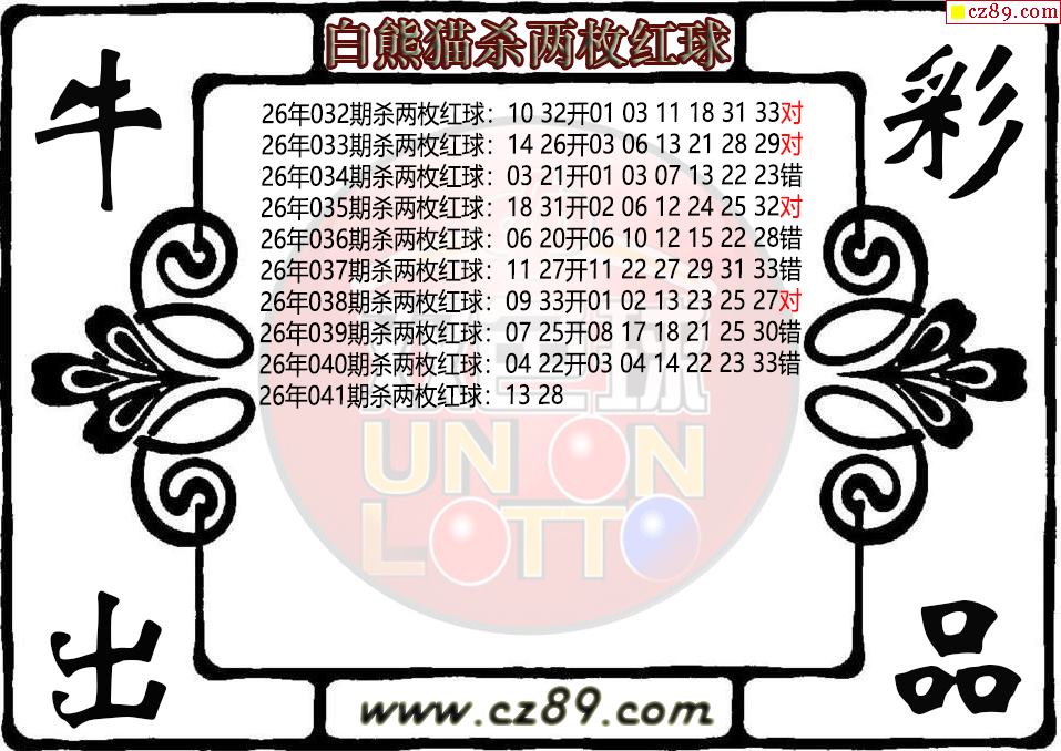 双色球041期 白熊猫杀两枚红球图迷