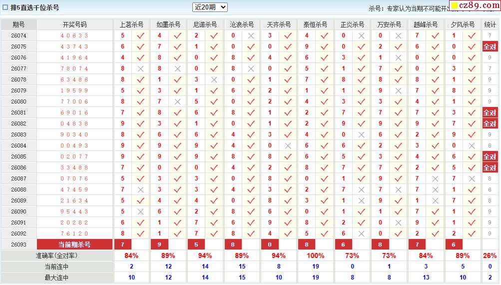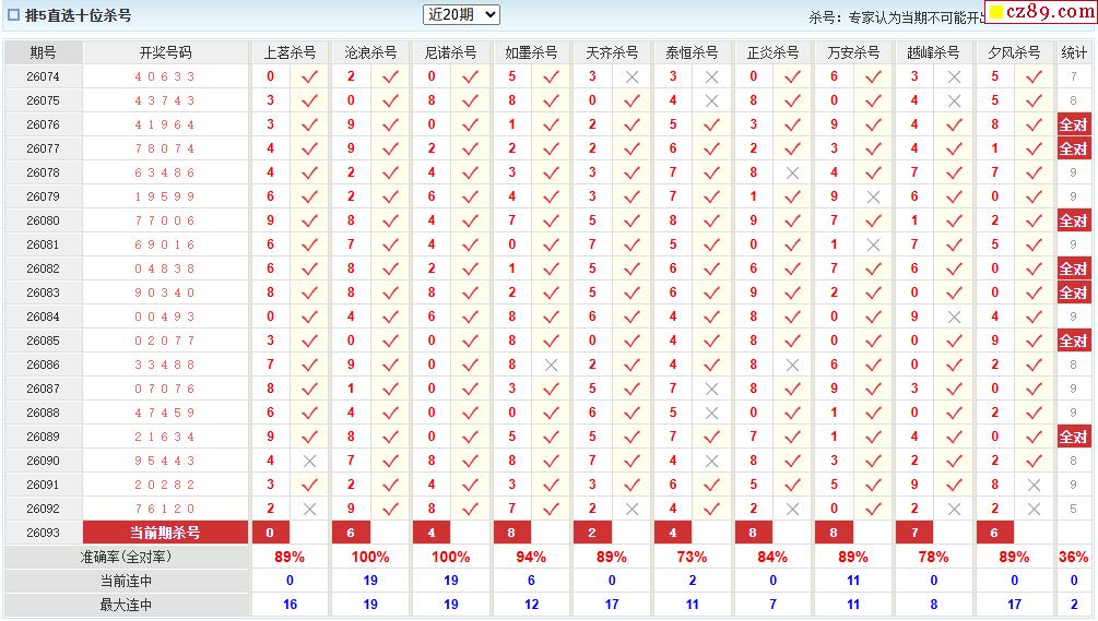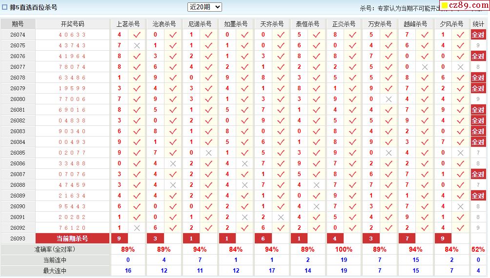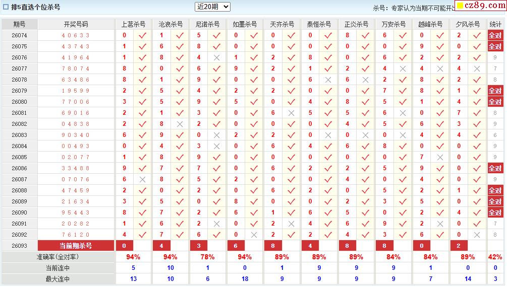 26年093期彩宝贝专家体彩P3杀号定码图表