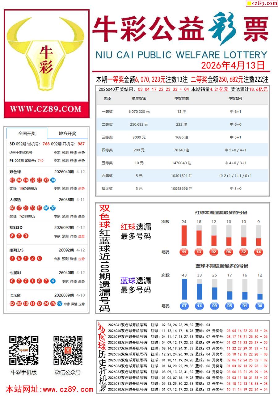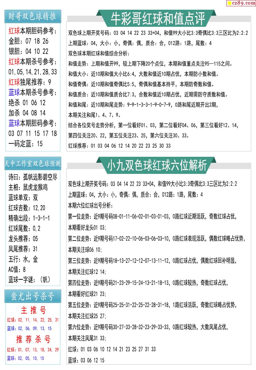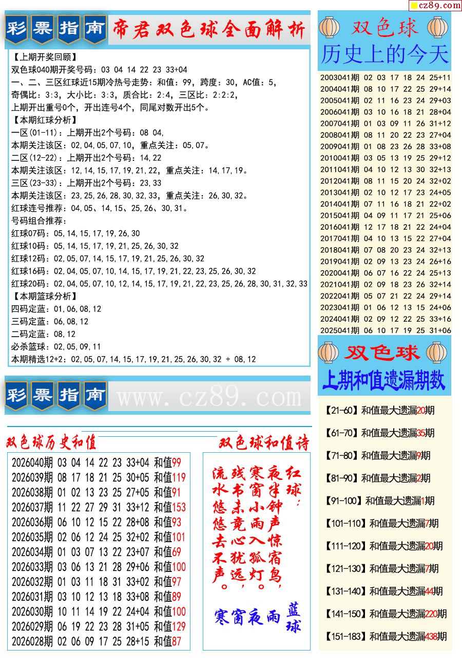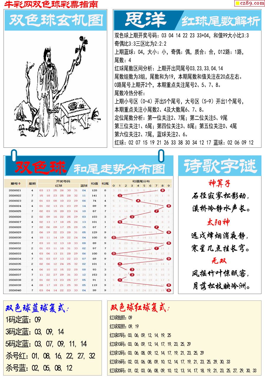 26年041期双色球彩票指南【牛彩版】