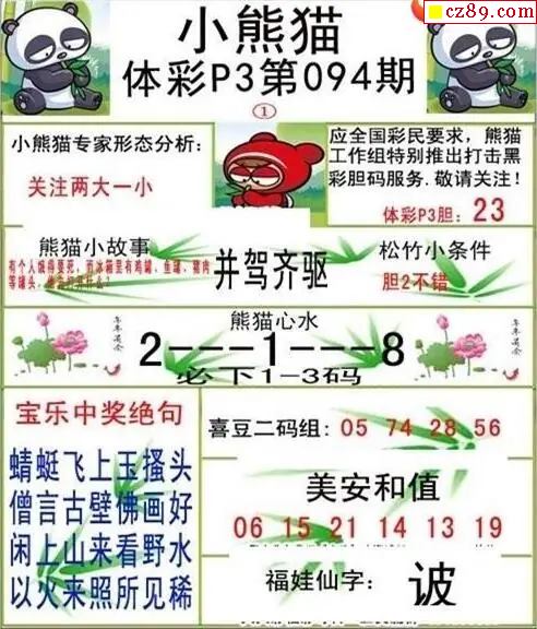 2026年094期牛彩网体彩P3画迷图谜汇总分享